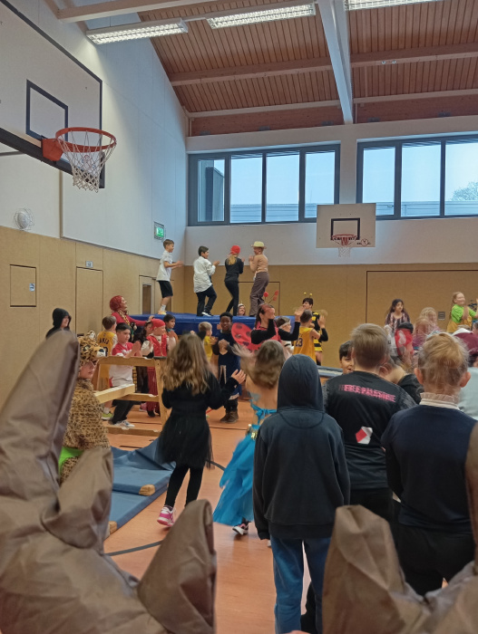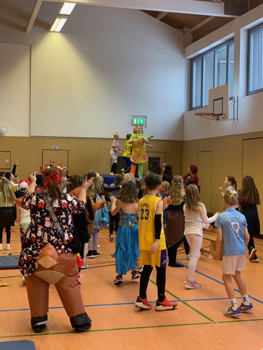 Auch in diesem Jahr fand am Faschingsfreitag wieder eine große Faschingsfeier bei uns in der Schule statt. Dabei wurde in den Klassen und in der Turnhalle ausgiebig gefeiert! Bei den Verkleidungen waren der Kreativität der Kinder mal wieder keine Grenzen gesetzt. Neben den klassischen Kostümen wie Pippi Langstrumpf, Piraten und Polizisten gab es auch viele eigene Kreationen zu bewundern. Verschiedene Spiele und leckere Büfetts in den Klassen sowie tolle Bewegungsstationen in der Turnhalle bescherten den Kindern einen Tag voller Spaß und bester Laune!