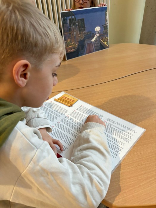 * Die 4. Klassen haben ihren Patenkindern in den 1. Klassen vorgelesen. Es wurden Bilderbuchkinos gezeigt (Das Grüffelo) oder verschiedene Kamishibais vorgelesen (Die Olchis; Das kleine Gespenst, Lieselotte)