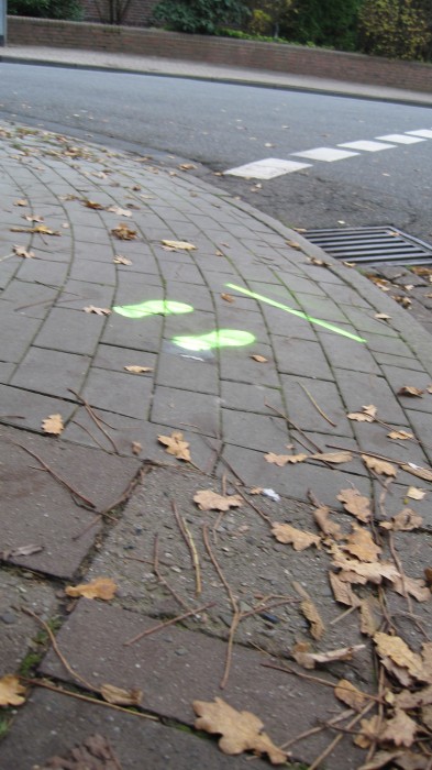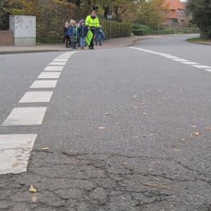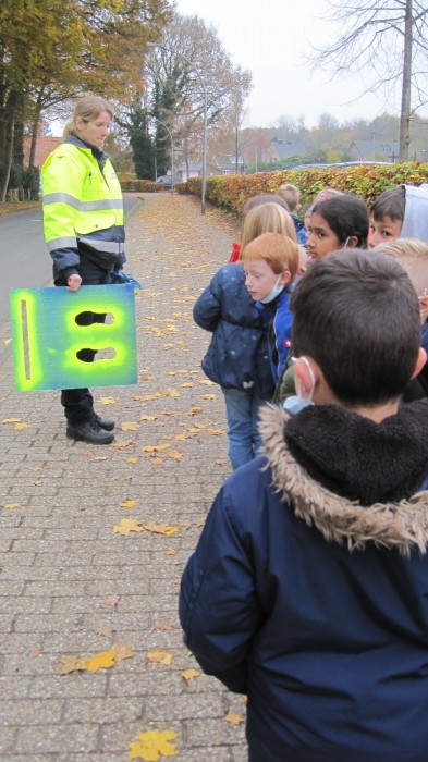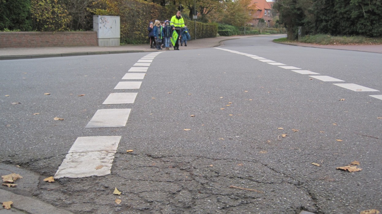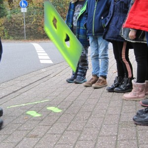 Die gelben Markierungen sollen an diesen markanten Punkten eine Orientierungshilfe beim Überqueren der Straßen sein. Bei dieser Gelegenheit wurde auch besprochen, wie die Kinder sich richtig im Verkehr verhalten.