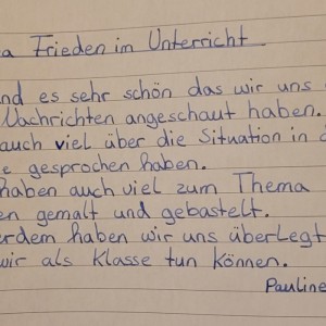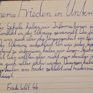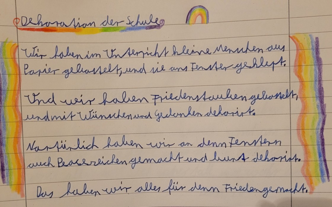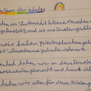 Statt eines Aktionstages führen wir an unserer Schule verschiedene Aktionen zum Thema „Frieden und Toleranz“ im Unterricht durch.