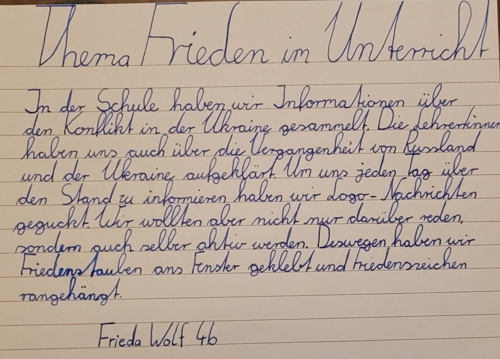Der Krieg gegen die Ukraine beschäftigt Kinder und Erwachsene sehr. Viele Kinder verunsichern die Bilder aus den Medien und sie möchten wissen, was dort in der Ukraine passiert.