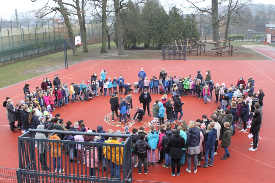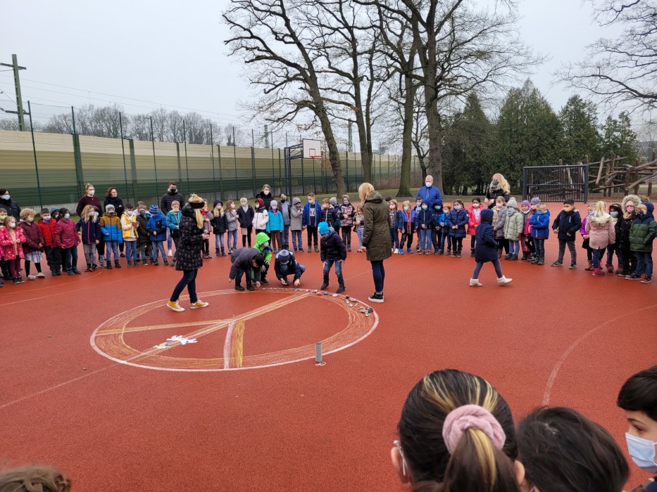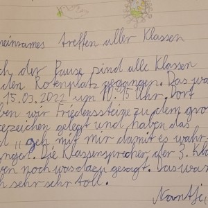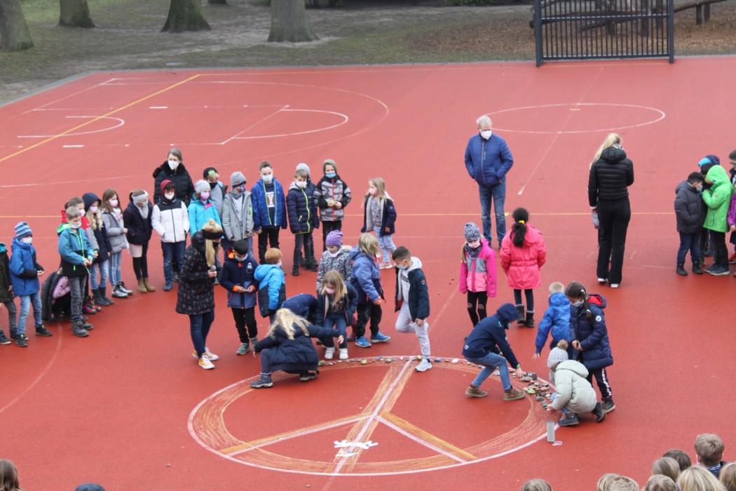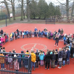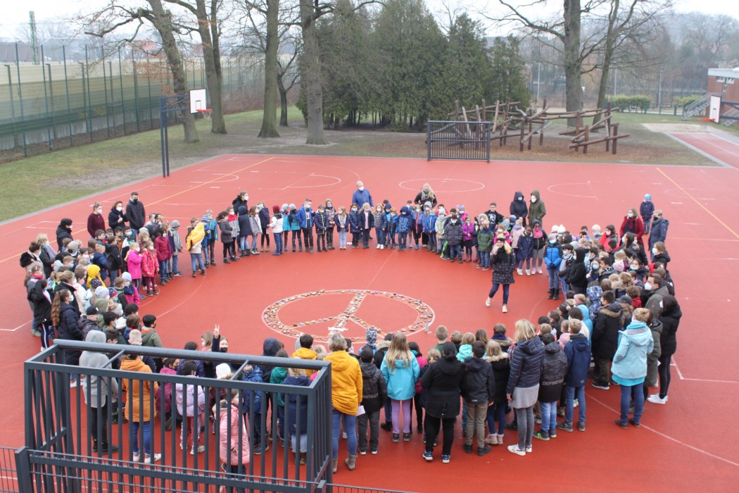 Peace-Zeichen auf dem Schulhof als Zeichen der Solidarität18.03.2022