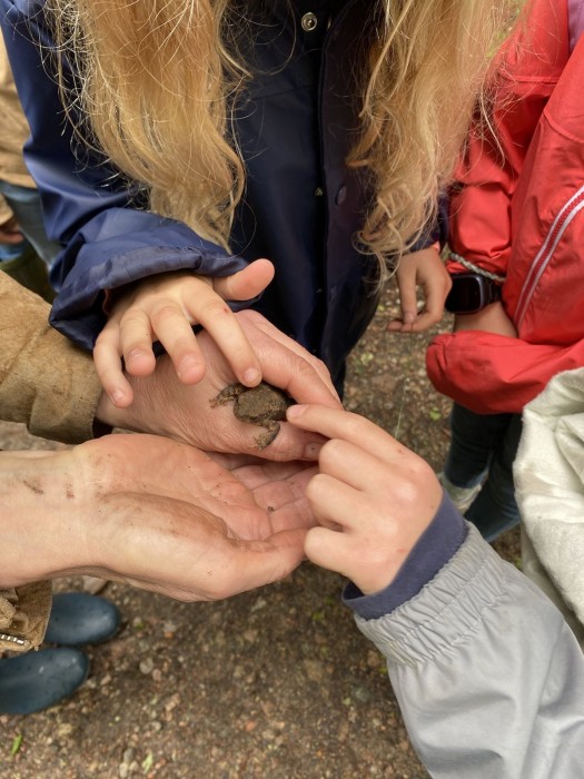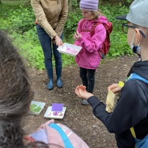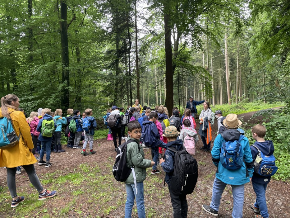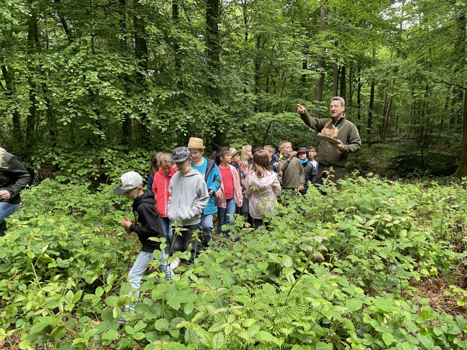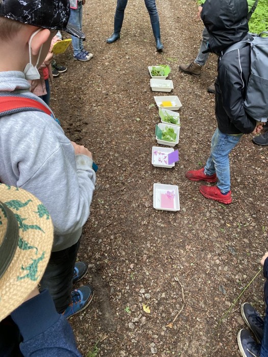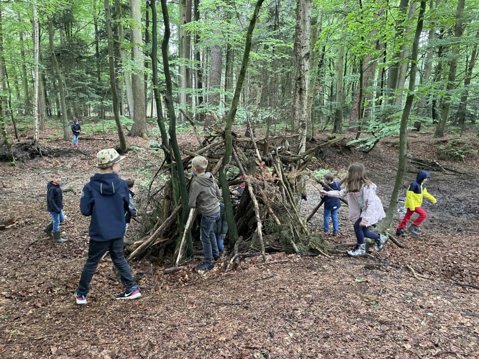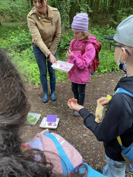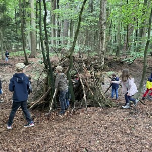 Wir waren mit unserer Klasse im Wald, dort haben wir eine Hütte gebaut und ein Picknick gemacht. Danach waren wir bei den Jägern, die uns viel von den Tieren im Wald erzählt haben. Wir haben neben der Hütte ein kleines Rehkitz (präpariert) gefunden. Die Jäger haben uns Gebisse von einem Reh, einem Fuchs und einem Nutria gezeigt. Dann haben wir noch Wolf und Reh gespielt. Bei der Naturstation haben wir was über Pflanzen und Bäume gelernt. Bei der Suche nach verschiedenen Blättern haben wir einen Frosch und ganz viele Weinbergschnecken gesehen. Es war sehr toll.