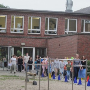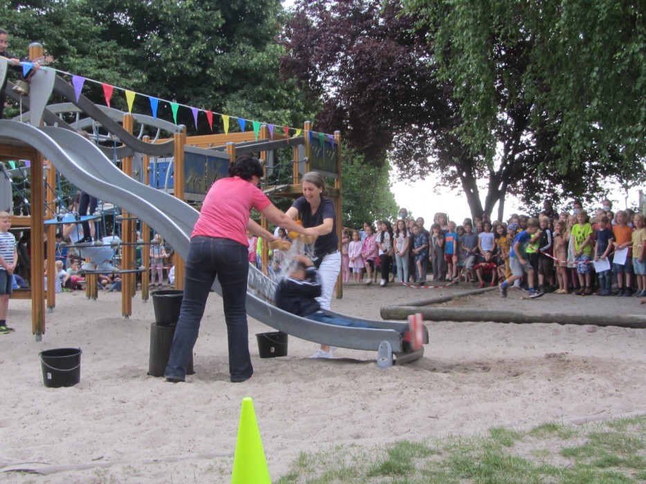 Am letzten Schultag hieß es Abschied nehmen von unseren Viertklässlern. Traditionell wurden sie mit einer „kalten Dusche“ in die weiterführende Schule verabschiedet. Stellvertretend wurden sie von Naile Ildiz, Leiterin der Stufen 5/6 der KGS Rastede, begrüßt. Wir wünschen alles Gute!