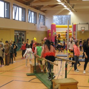 Jede Menge Spaß hatten die Kinder am Rosenmontag bei den Faschingsfeiern. Und so sah man am Morgen viele toll verkleidete Kinder auf dem Schulhof: Hexen, Vampire, Cowboys, Prinzessinnen und viele andere Gestalten machten sich auf zur Schule. Neben den Feiern in den Klassen, erwartete die Kinder in der Kleinen Turnhalle bunte Bewegungsstationen, an denen sie sich so richtig austoben konnten.