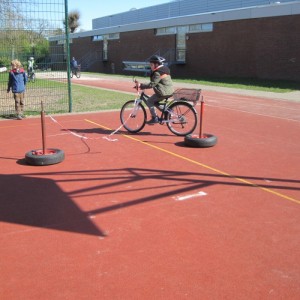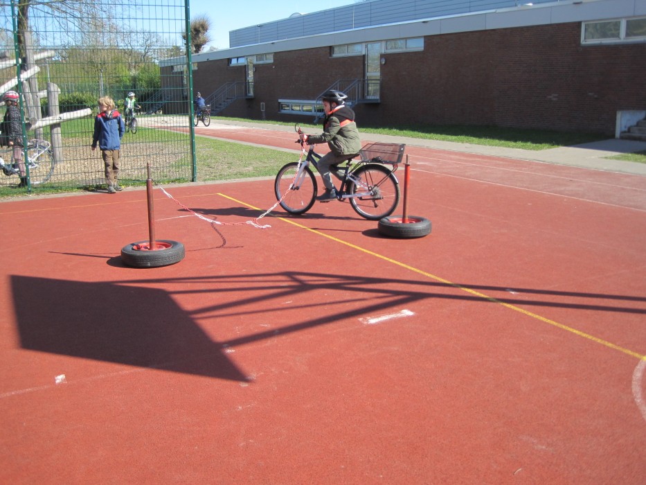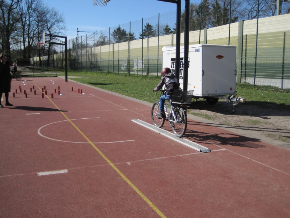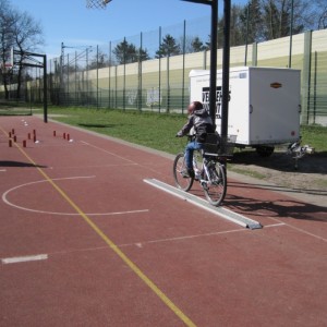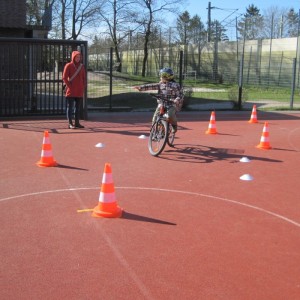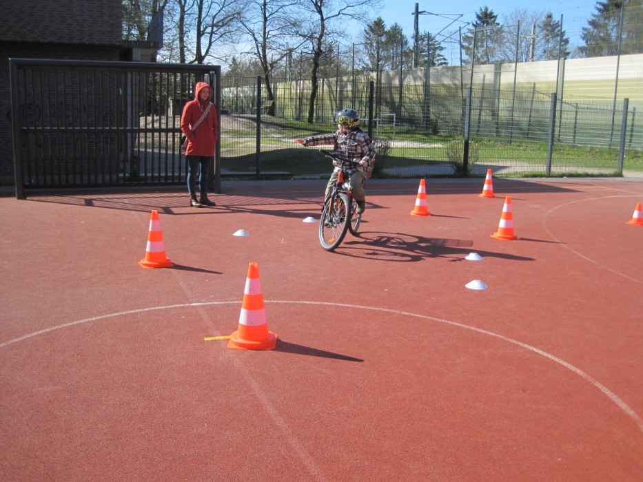 Bei bestem Wetter konnten die SchülerInnen des 3. Jahrgangs ihr Können unter Beweis stellen. Die Kinder trainierten beim Radfahrtraining mit dem ADAC-Fahrradparcour eine verkehrsgerechte Fahrweise und sicheres Verhalten im Straßenverkehr. An insgesamt acht Stationen wurden angemessene Geschwindigkeit, Vorsicht und vorausschauendes Verhalten, das Vermeiden von Risikosituationen, Gleichgewichtsübungen sowie Bremsverhalten und zielgenaues Anhalten erlernt. Die Radfahrübungen beinhalten hierbei Spurwechsel, Slalom, Zielbremsen, Überqueren eines Schrägbretts, Kreiselfahren, Spurbrett und Anfahren. Bei den Fahraufgaben kommt es wie im Straßenverkehr darauf an, korrekt und fehlerfrei zu fahren.