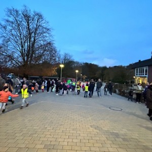 So gab es mit Einbruch der Dunkelheit auf dem Schulhof viele bunte Lichter in unterschiedlichen Formen zu bestaunen. Mit den leuchtenden Laternen zog der Laternenumzug durch den Palaisgarten. Dabei wurden Kinder und Eltern musikalisch begleitet von Frau Babachanov. Bei leckerem Kinderpunsch und Brezeln konnten sich alle wieder aufwärmen und das Fest mit netten Gesprächen ausklingen lassen.