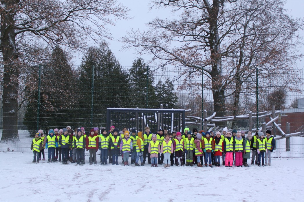 Um den Schulweg für die Kinder sicherer zu machen, stattete die Verkehrswacht die Erstklässler mit Warnwesten aus. Besonders in den dunklen Herbst- und Wintermonaten sind Kinder auf dem Schulweg besonders gefährdet. Wenn die Kinder dunkle Kleidung ohne helle, reflektierende Materialien tragen, sind sie bei schlechtem Wetter und bei Dunkelheit im Straßenverkehr oft kaum zu sehen.