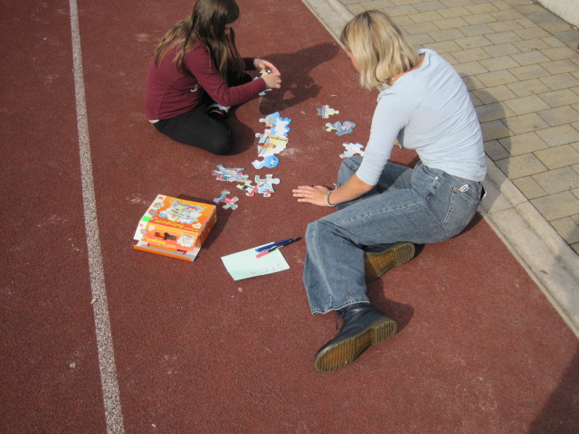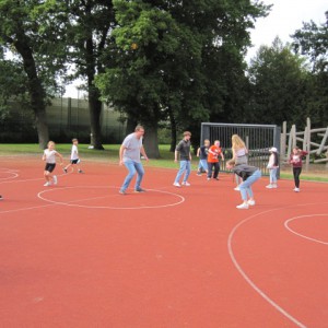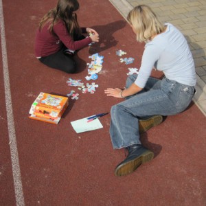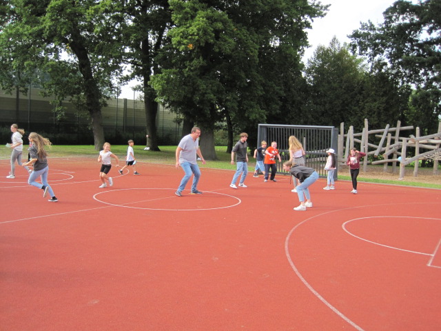 Am Freitagnachmittag (10.09.2021) ist das Projekt „Balu und Du“ mit einem sehr gelungenen Kennenlernfest gestartet. Die Schüler*innen (Balus) der 12. Klasse der KGS haben ein buntes Programm mit verschiedenen Spielen und Übungen zusammengestellt. Nach einem kleinen gemeinsamen Aufwärmspiel mussten die Moglis (GS-Kinder) die Namen ihrer Balus zusammen puzzeln. Nach dem „matching“ ging es für die Pärchen zu den verschiedenen Stationen, um Buchstaben zu erspielen und ein Lösungswort heraus zu bekommen. Anschließend ging es auf Schatzsuche!